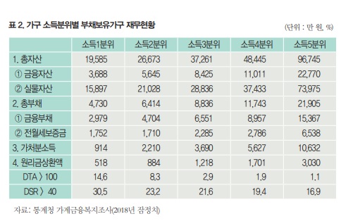 "1) 가구처분가능소득 대비 가계부채 비율 = (가구부채총액 ÷ 가구순가처분소득) × 100