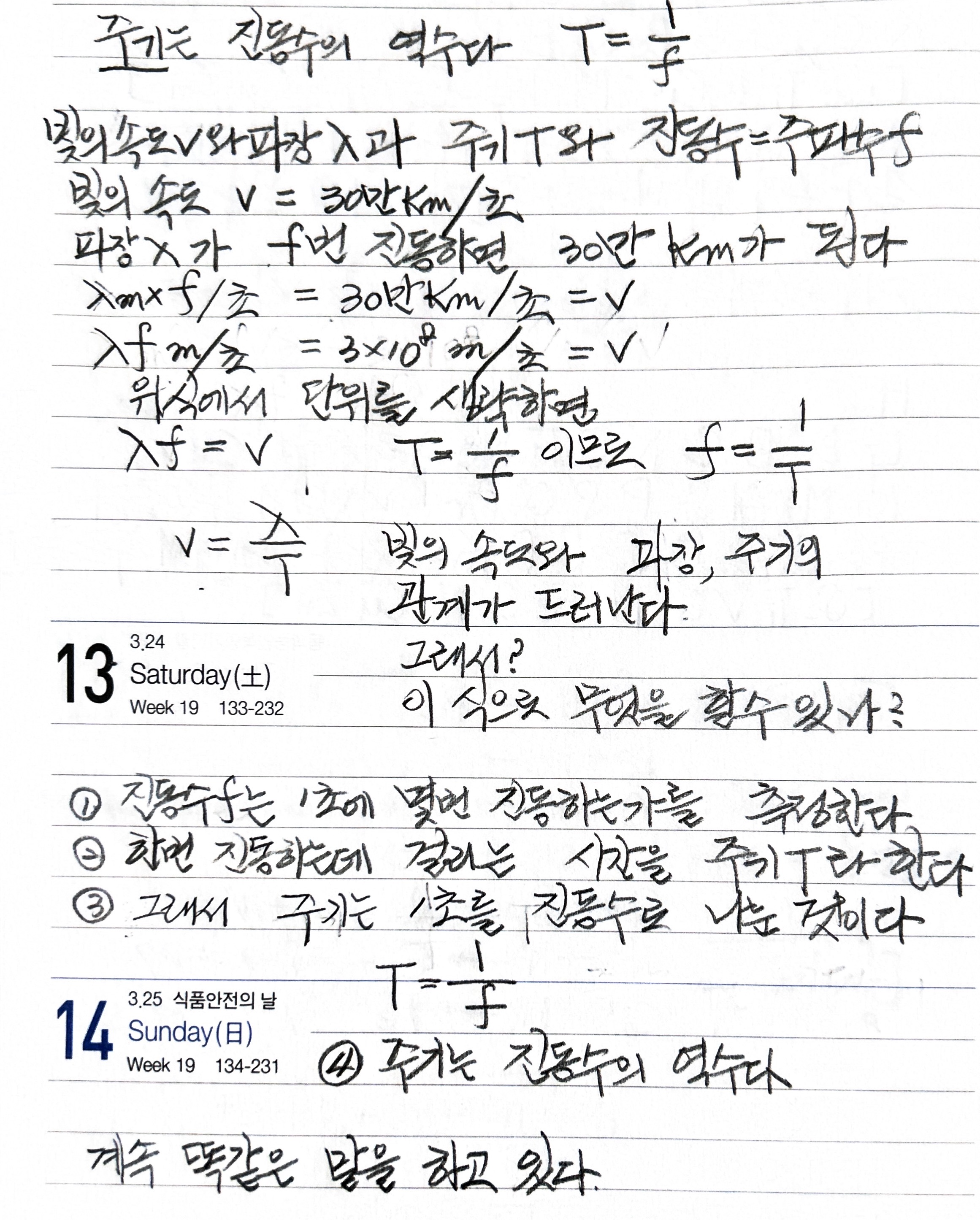 마) 진동수 f=f이면, 1초에 f회 진동하므로 T=1/f초