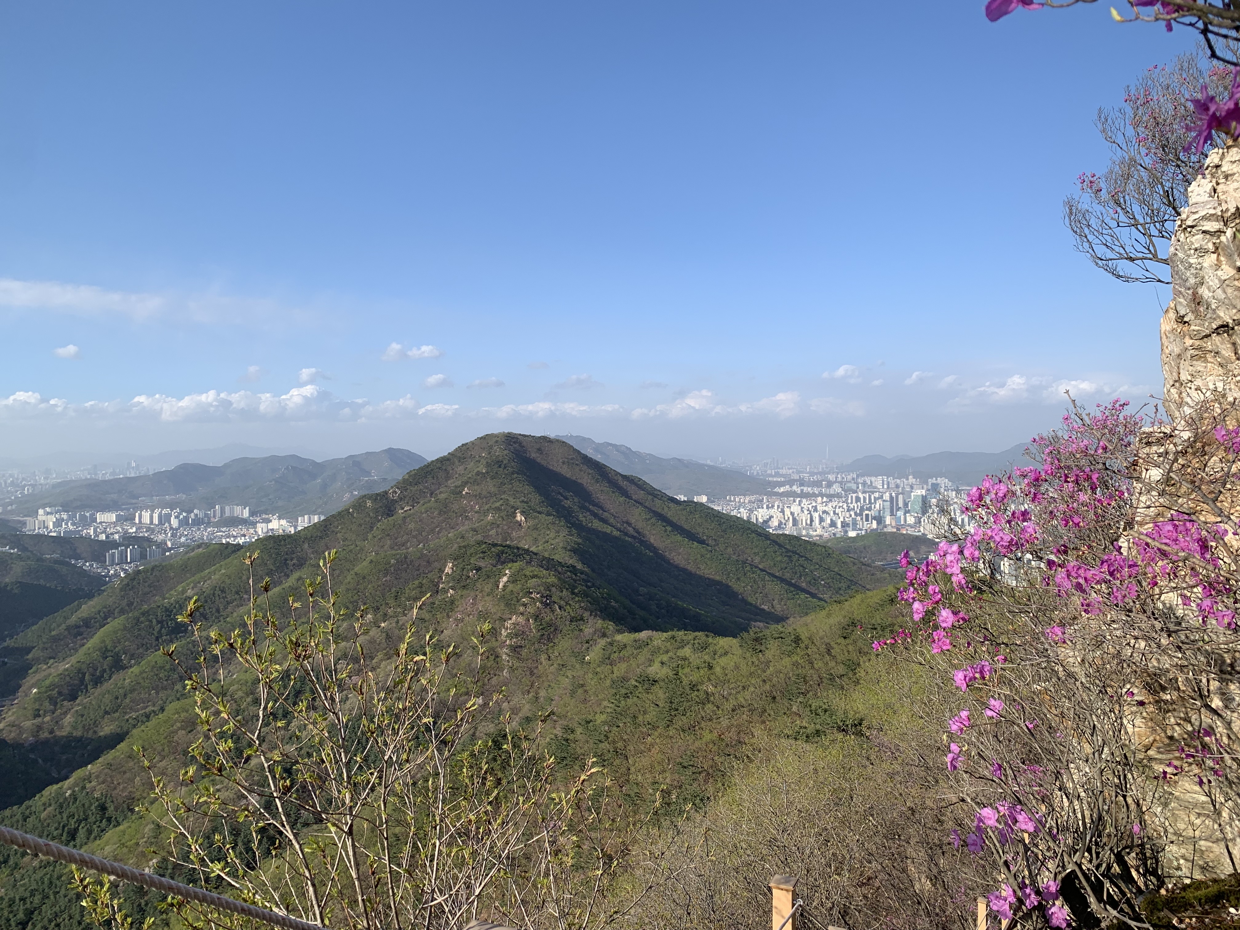 바람이 불면 예비로 챙겨 간 바람막이로도 추위를 완전히 막을 수 없을 정도로 추웠지만, 전망대에 앉아서 김밥을 먹으며 아파트 전경을 바라볼 수 있을 정도로 포근하기도 했다. 어떻게 투기를 해야 돈을 벌 수 있을까? 도시의 산은 이렇게 한심한 욕심을 불러일으키지만, 숲으로 둘러싸인 곳에서는 자연 그대로의 장관도 펼쳐진다.