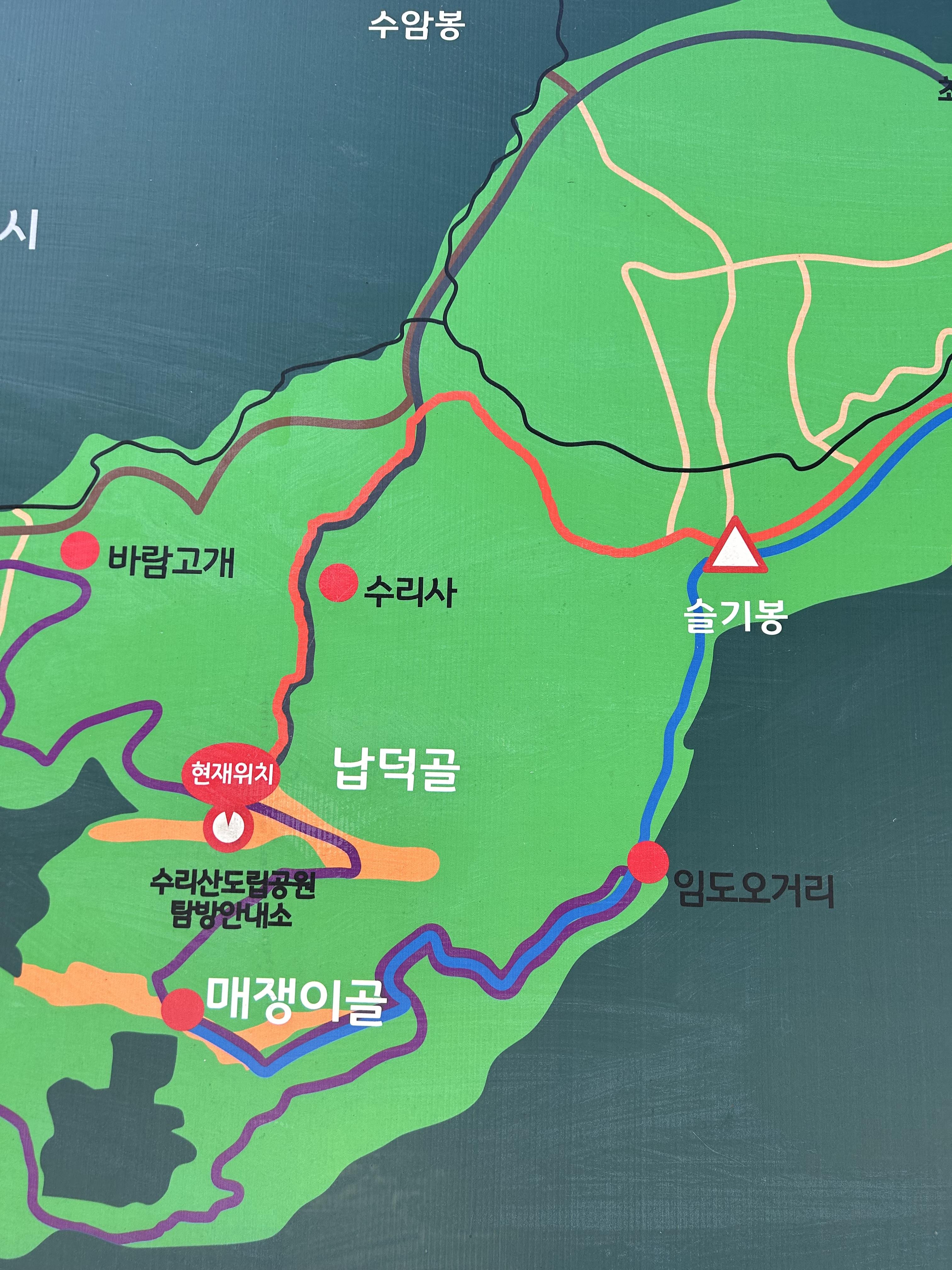 수리산 탐방안내소 주차장 - 수리사 - 슬기봉 - 임도오거리 - 탐방안내소로 돌아오는 3시간 길이다.