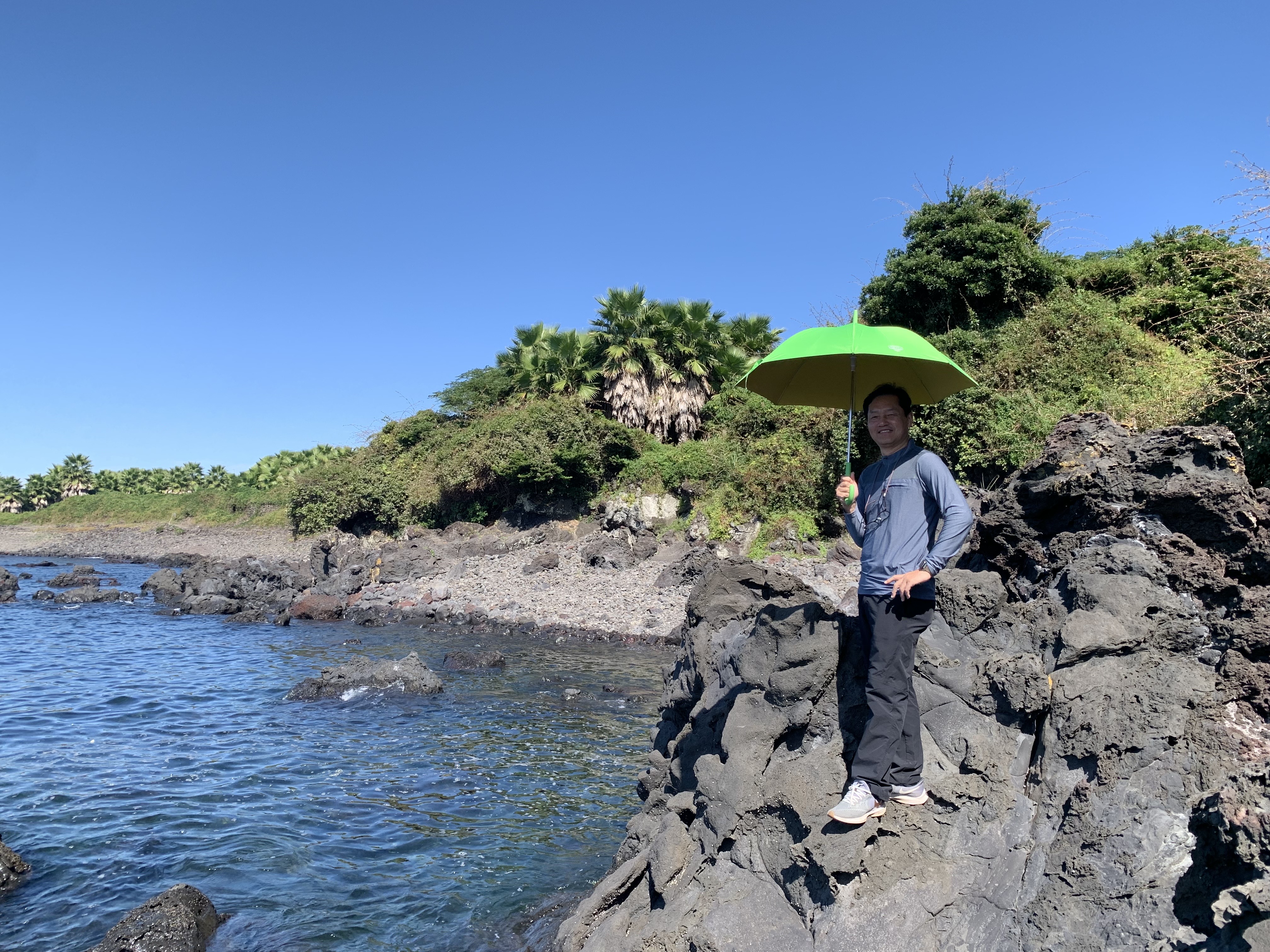 3시가 넘어서 우주신과 함께 아침에 걸어온 길을 거꾸로 걸어간다. 이번에는 법환포구에 주차되어 있는 차를 찾으러 간다. 아니, 그곳을 지나서 외돌개까지 가기로 했다. 해가 뜨거워서 여전히 우산을 써야 한다.