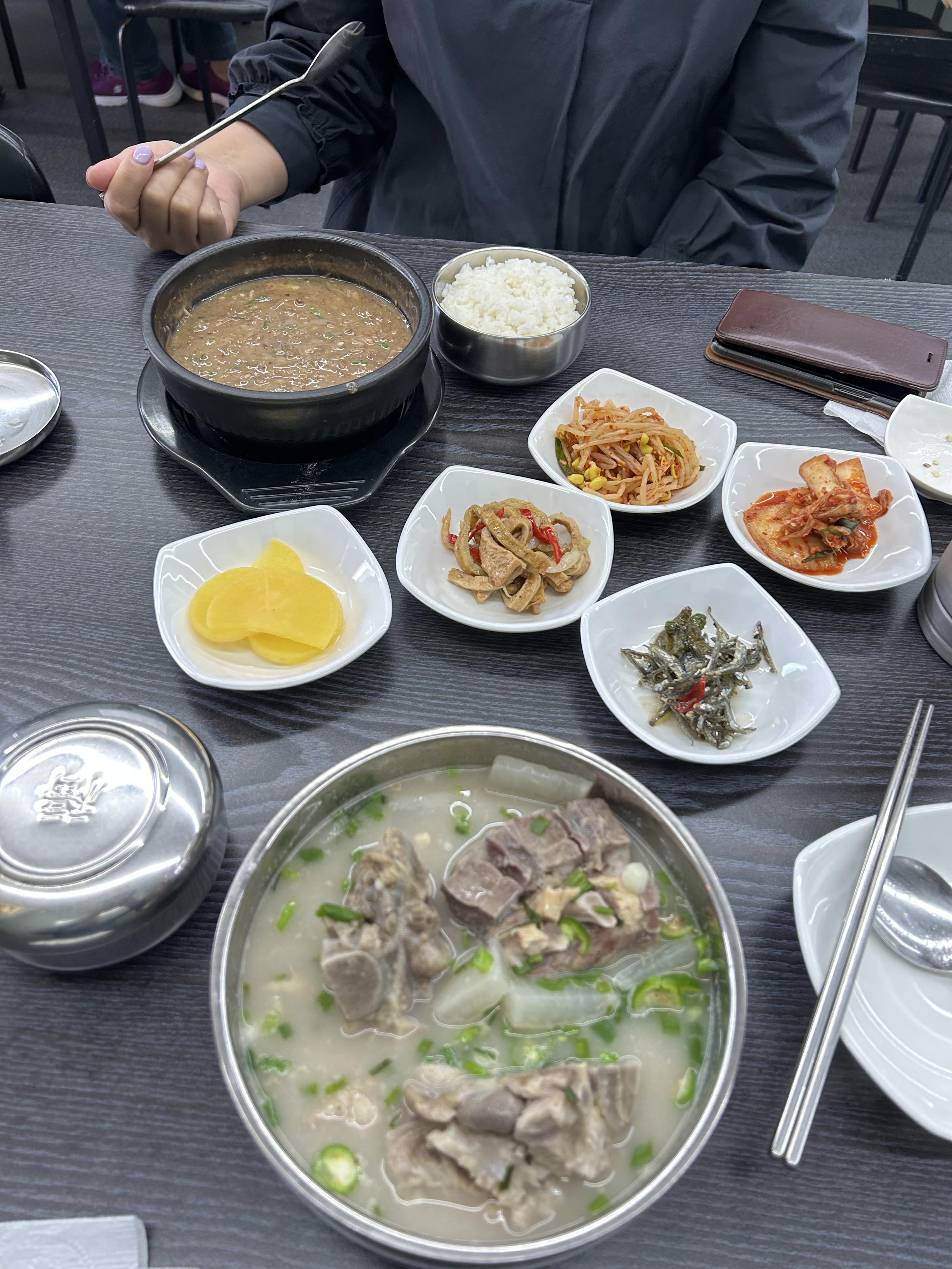 12시에 호텔을 나와 점심을 먹었다. 그리미는 고사리 해장국, 나는 생전 처음보는 접짝놈뼈국. 익숙한 재료인 돼지등뼈를 이용한 음식인데, 속을 편안하게 하는 기름진(?) 음식이다.