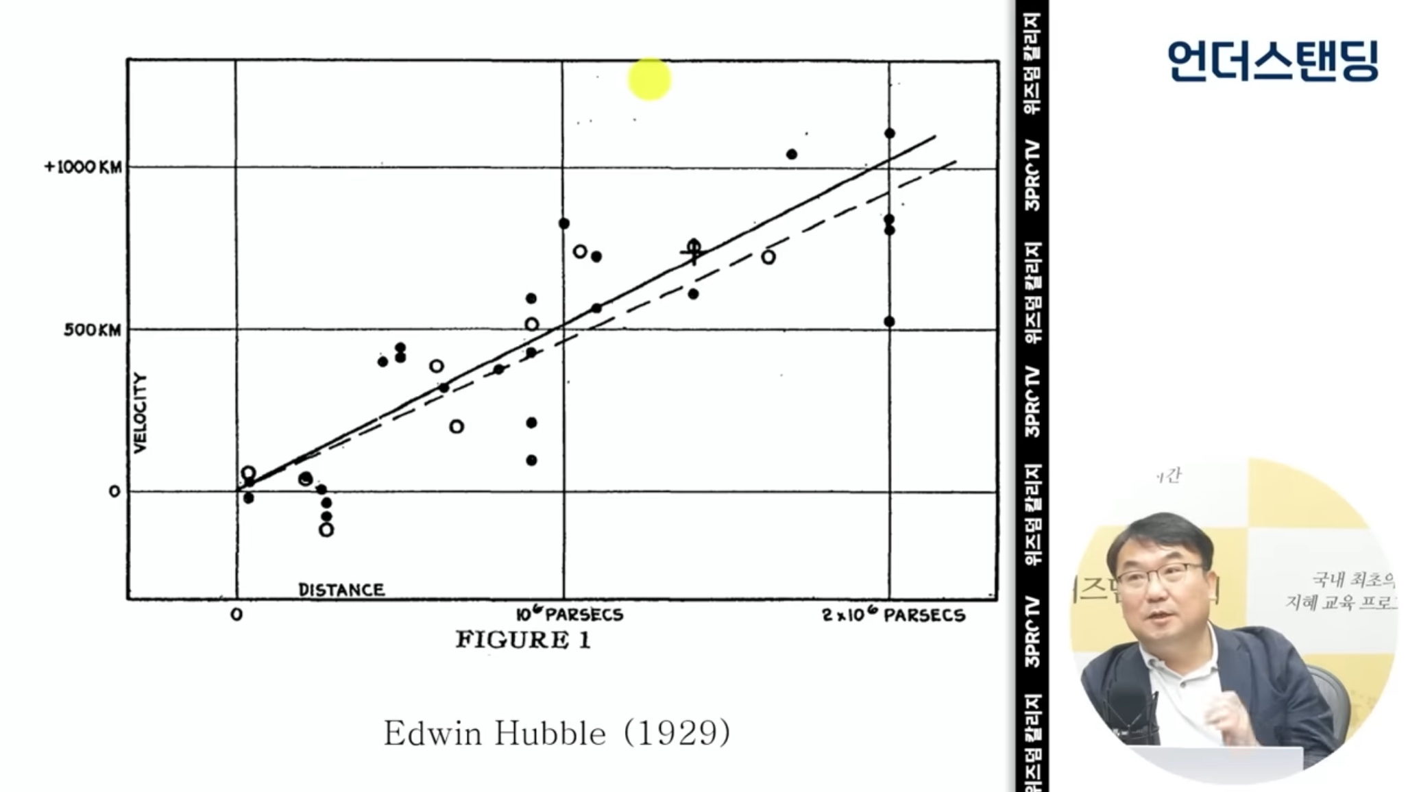 위 그림에서 관측점들의 속도가 정확히 직선위에 있지 않은 것은, 관측도구의 한계 때문이다. 그 이후에 관측한 기록들은 정확하게 일직선 위에 올려져 있다.