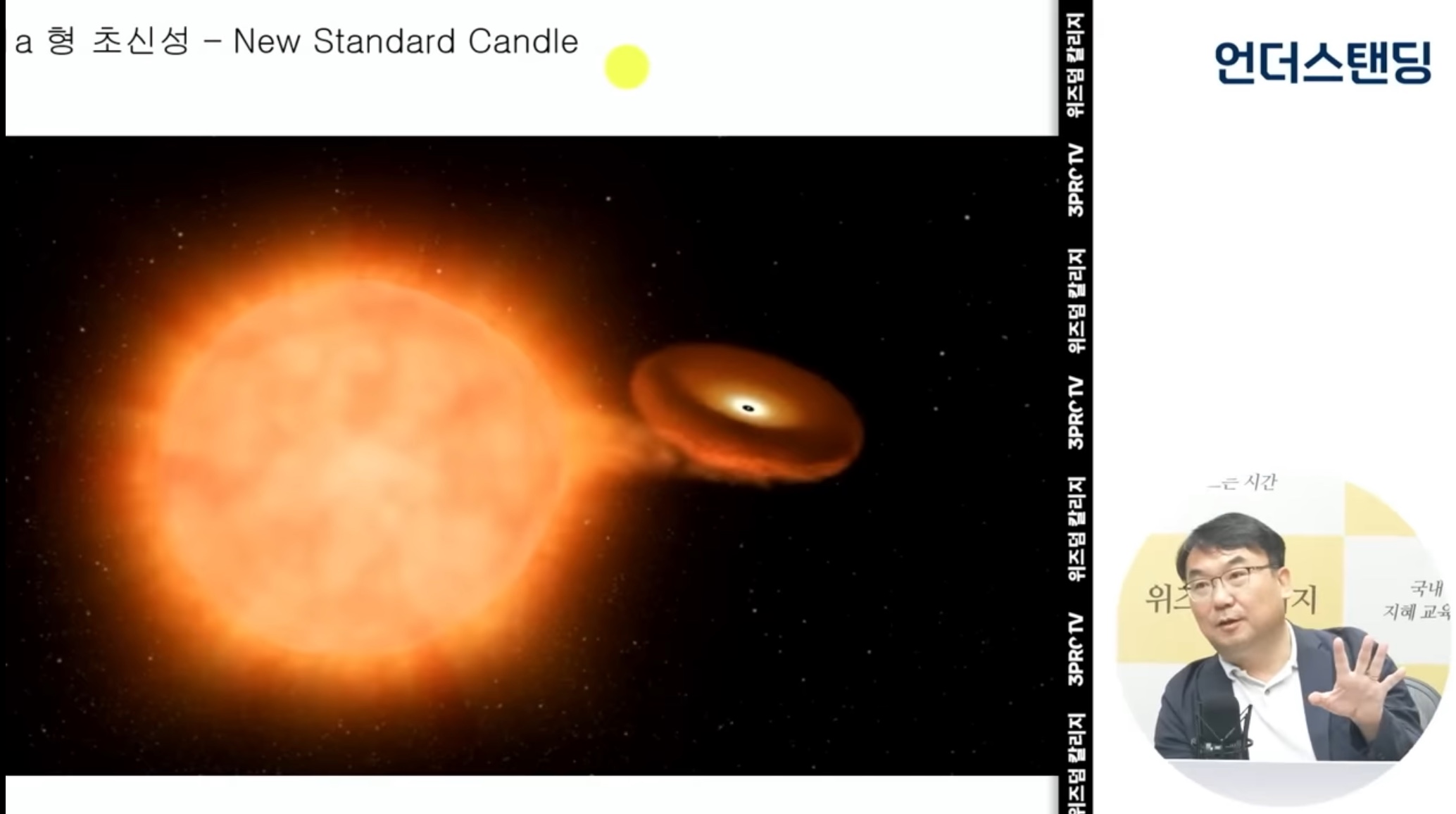 7) 아래 사진에서 오른쪽 도넛 모양의 별이, 백색왜성이 인접한 별이 폭발하면서 보낸 물질들에 의해 질량이 커지면서 초신성 폭발을 하는 Ia형 초신성이다