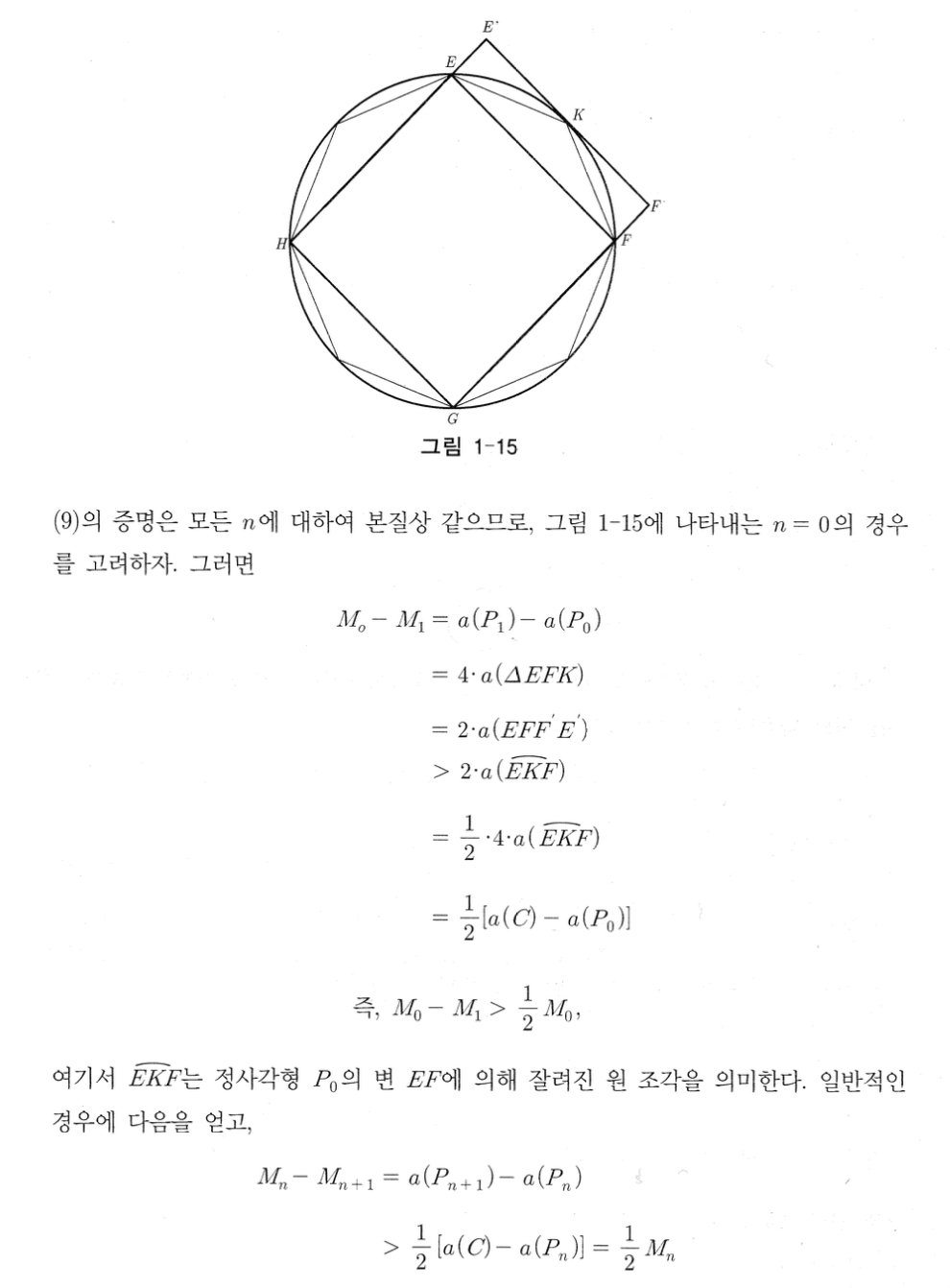 원에 내접하는 정n각형의 넓이는 정(n+1)각형의 넓이보다 작다.