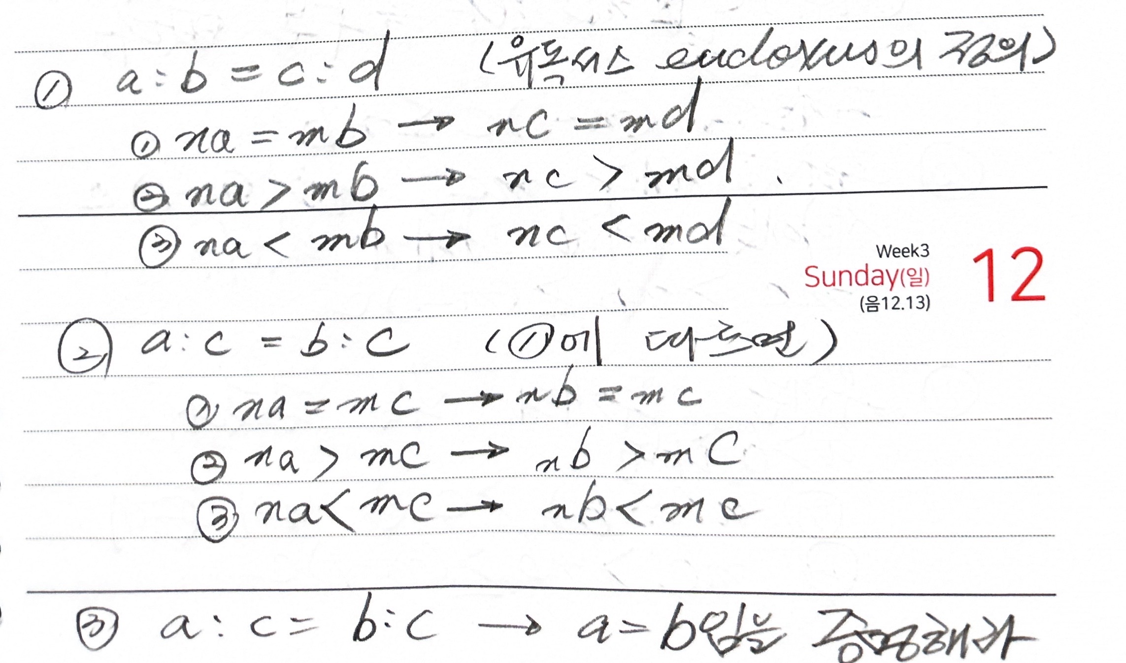 4) a:c = b:c -> a=b라는 것은 너무 당연해보이는데, 이렇게까지 증명을 하는 이유가 무엇일까?