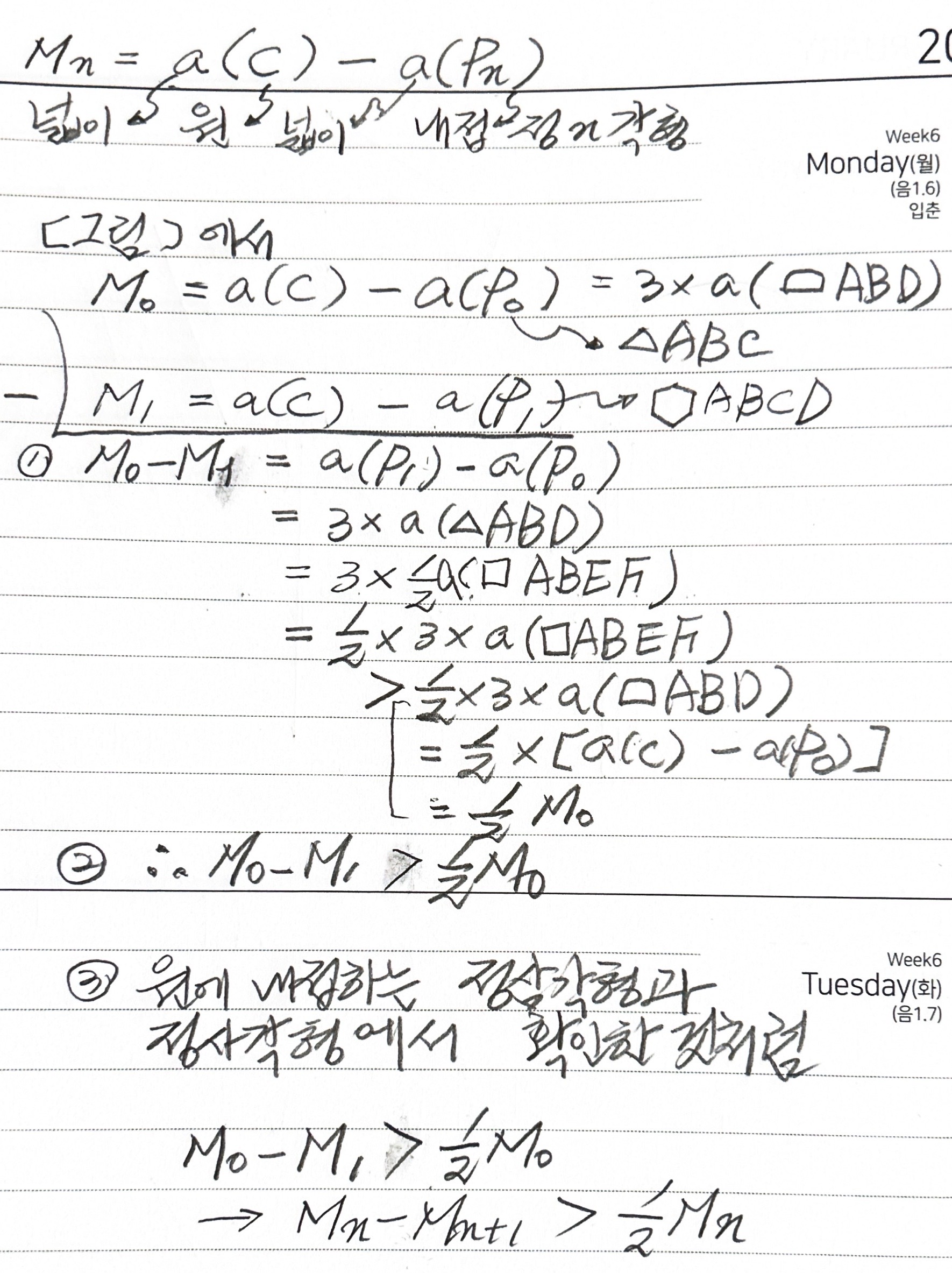연습문제 1.2 다각형 면적을 내는 법은, 분할법으로 알아내지 못했다. 아마도 선을 잘못 그었을 것이다. 일단 유보하고 넘어가기로 한다.
