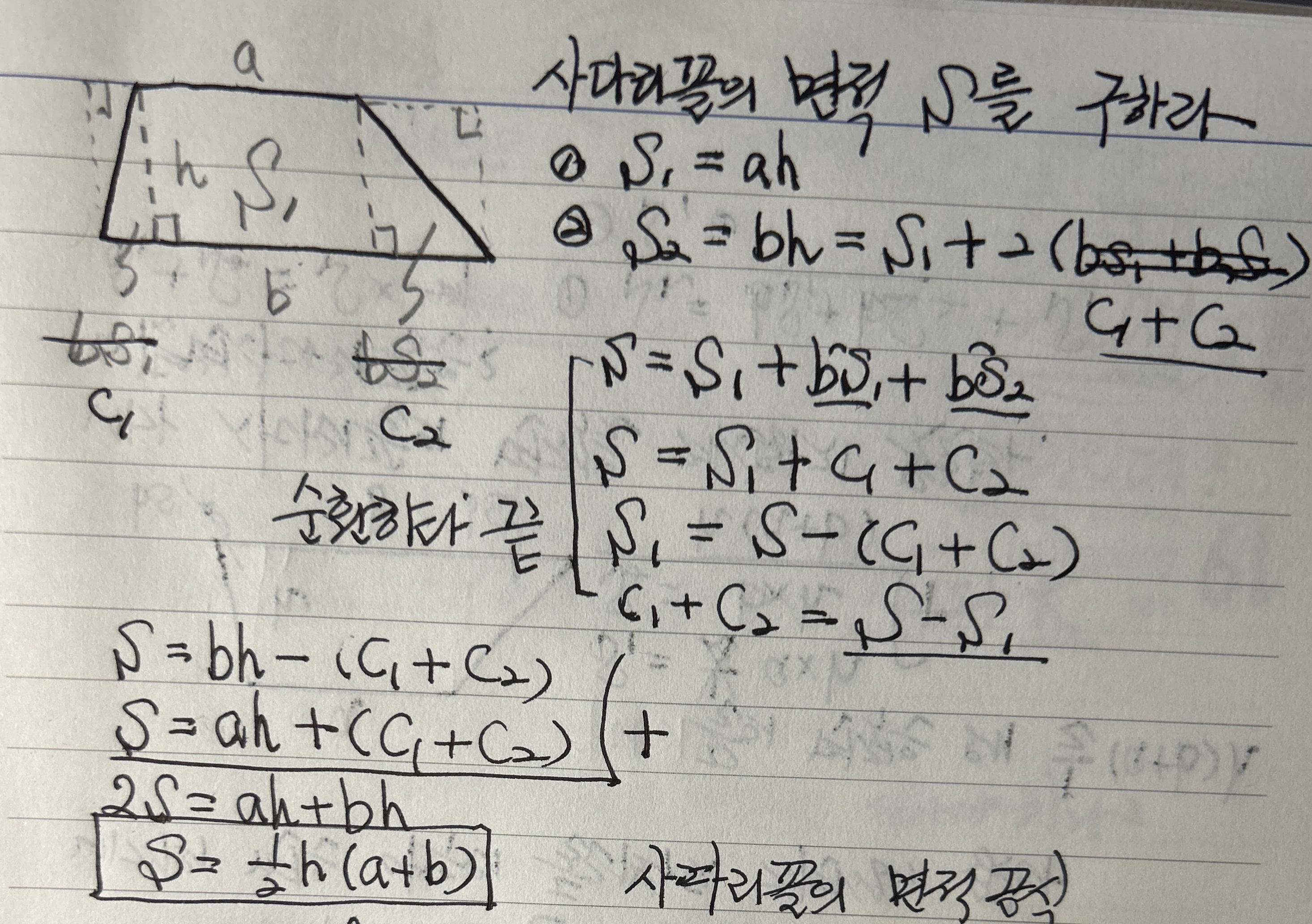 연습문제 1.1 사다리꼴의 면적을 구하는 공식이 바로 떠오르지 않아서 한참을 고민했다. 그러다 어제밤에 풀어냈고, 오늘 아침 다각형 면적을 구하려다가 더 쉬운 방법을 알아냈다.