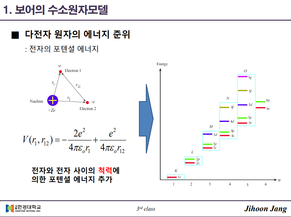 전자의 에너지 껍질(n)은 총 7개가 있고,