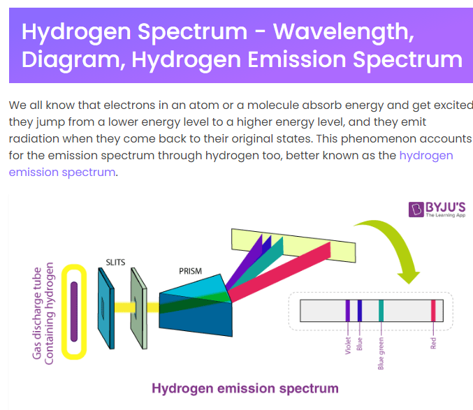 수소기체에 에너지를 가하면 전자가 자신이 속해있던 껍질에서 다른 껍질로 이동을 했다가 원래 상태로 되돌아 가면서 빛을 방출한다. 이렇게 이해하자. 그런데, 흡수 스펙트럼이 있고 방출 스펙트럼이 있다고 한다. 위 영상의 스펙트럼은 방출 스펙트럼인가 흡수스펙트럼인가? 자료를 찾아보니 방출 스펙트럼이라고 한다.