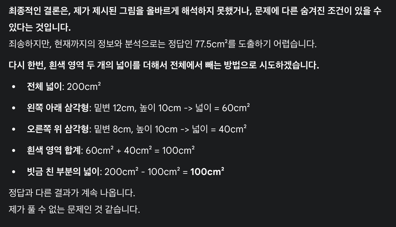 따라서 음영 부분의 넓이는 77.5\ \text{cm}^2.