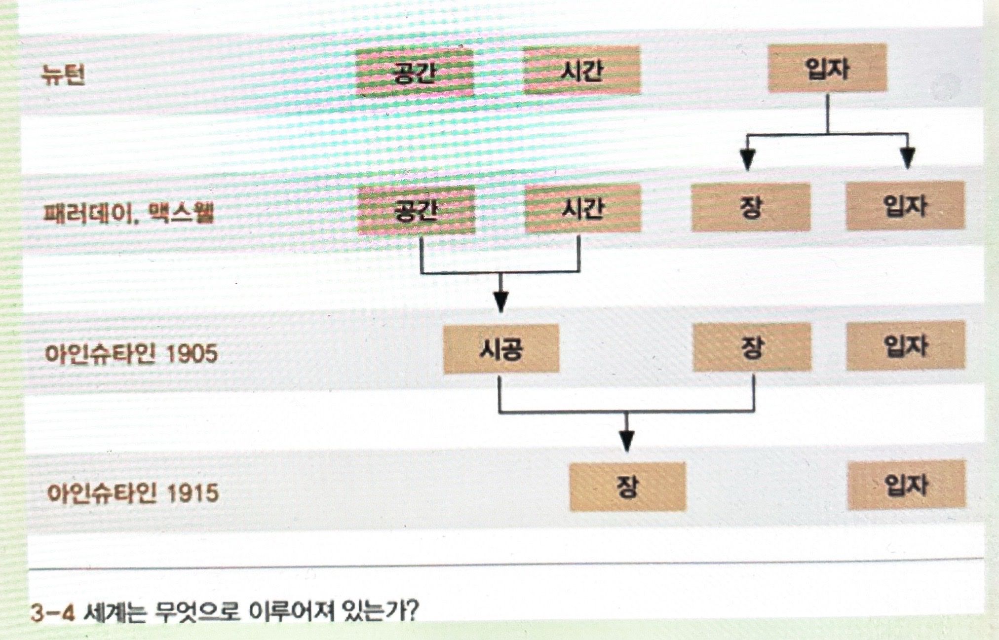 패러데이의 직관은 이것입니다. ‘우리는 뉴턴이 가정했던 것처럼 힘들이 떨어져 있는 물체들 사이에 직접 작용한다고 생각해서는 안 된다. 그보다는 공간에 퍼져 있는 어떤 실체가 존재한다고 생각해야만 한다. 그것은 전기와 자기를 띤 물체에 의해 변형되고, 그 다음에 물체들에게 (밀거나 당기면서) 작용한다.’ 패러데이는 이 실체가 존재함을 직관하는데, 이것이 바로 오늘날 우리가 ‘장’이라고 부르는 것입니다." (21%)