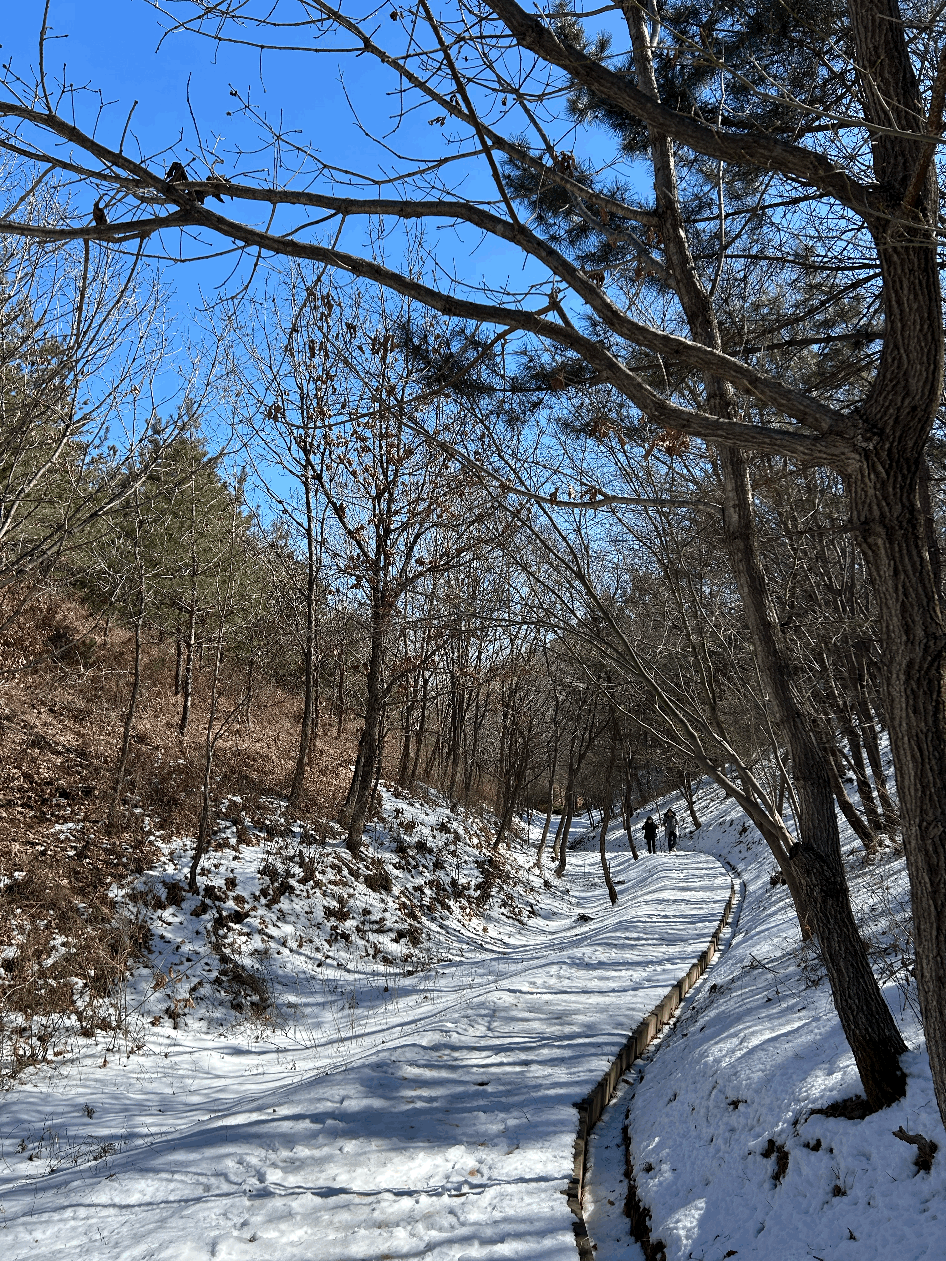 어제 아침(18일)을 빈둥거리다가 12시가 다되어 출발했고, 원대리 자작나무숲에 도착했더니 겨울에는 입장 마감이 2시라서 = 왕복 3시간이 걸려서 우리는 입장할수 없다고 한다. 오는 길에 거대한 얼음절벽을 그냥 지나쳐 왔다면 혹시 입장했을지도 모른다. 엊그제 내린 눈으로 다들 아이젠을 걸고 걸어나온다. 온도는 8도로 낮지 않은데 바람이 차서 꽤 춥다.